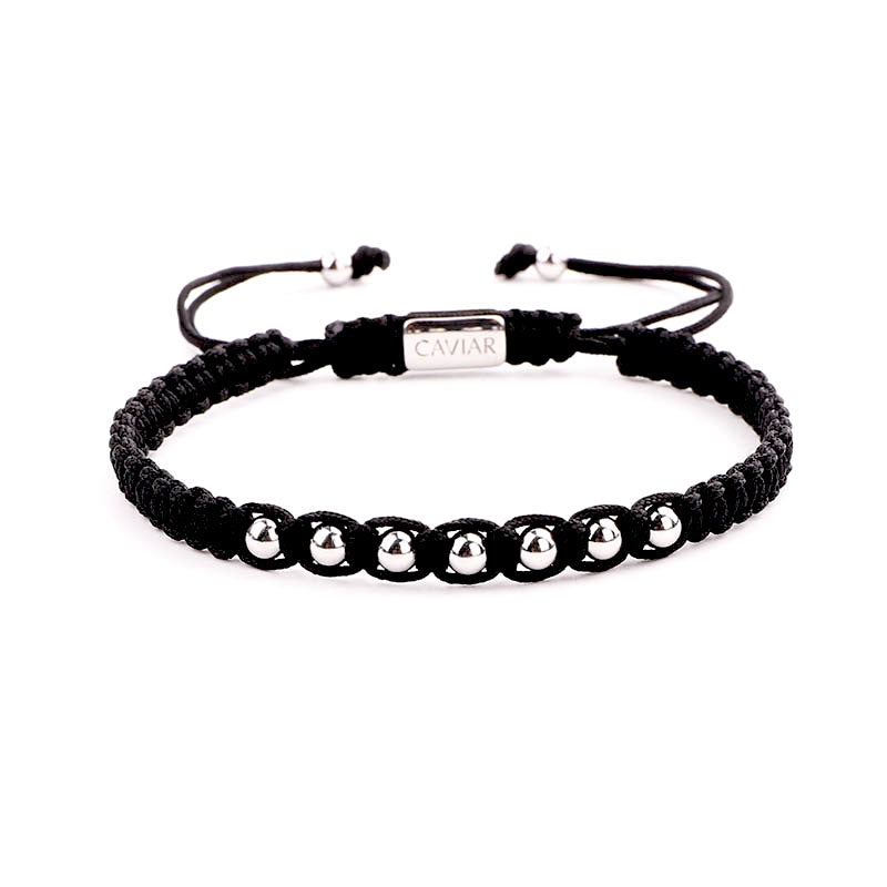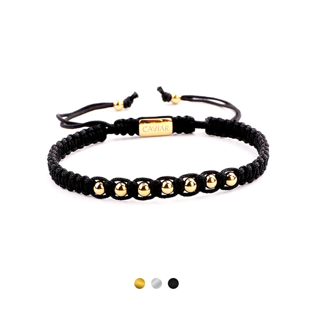 Onze kralenarmband is met de hand gemaakt van sterk nylon koord en afgewerkt met een verstelbaar trekkoordslot. De armband opent door de kralen die het dichtst bij het slotje liggen in tegengestelde richting te trekken en sluit door de kleine, bungelende gouden kralen in tegengestelde richting te trekken.