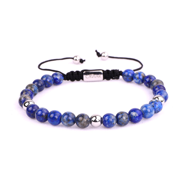 Onze kralenarmband is met de hand gemaakt van sterk nylon koord en afgewerkt met een verstelbaar trekkoordslot. De armband opent door de kralen die het dichtst bij het slotje liggen in tegengestelde richting te trekken en sluit door de kleine, bungelende gouden kralen in tegengestelde richting te trekken.