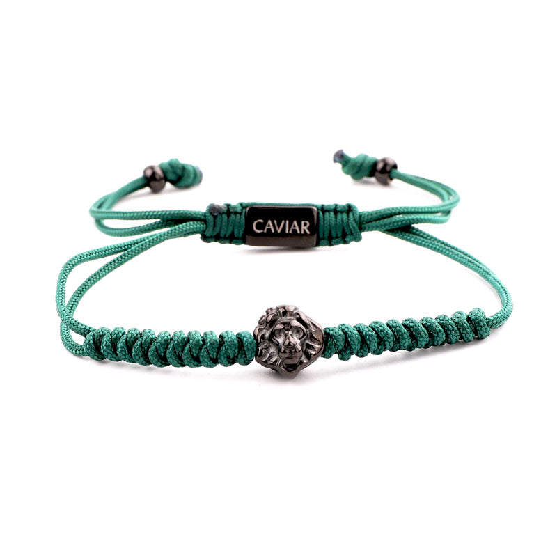 Deze armband is met de hand gemaakt van sterk nylon koord en afgewerkt met een verstelbaar trekkoordslot. De armband opent door de koord die het dichtst bij het slotje ligt in tegengestelde richting te trekken en sluit door de kleine, bungelende gouden kralen in tegengestelde richting te trekken.