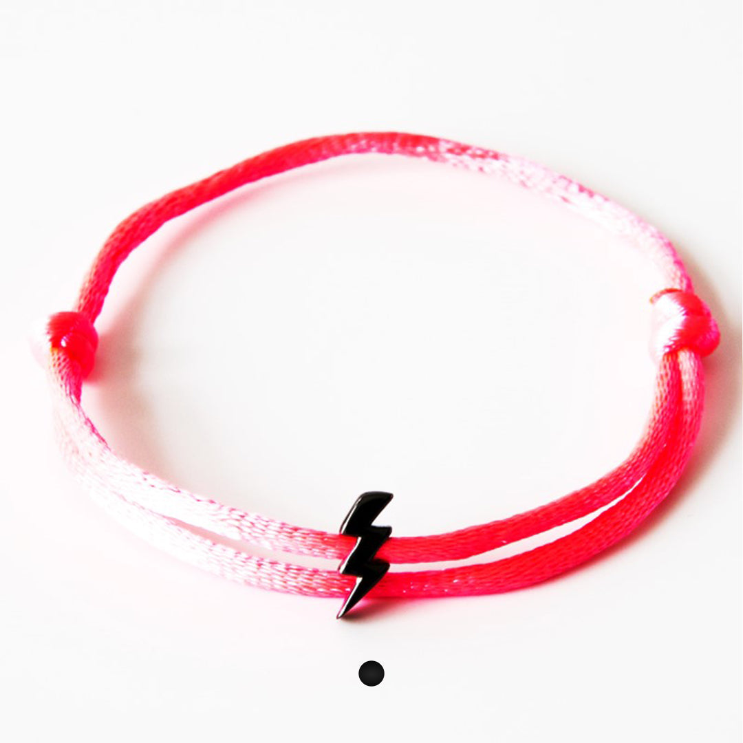 De armband is met de hand gemaakt van sterk satijn koord. De armband opent door de knoopjes naar buiten te schuiven en sluit door de knoopjes naar binnen te schuiven.
