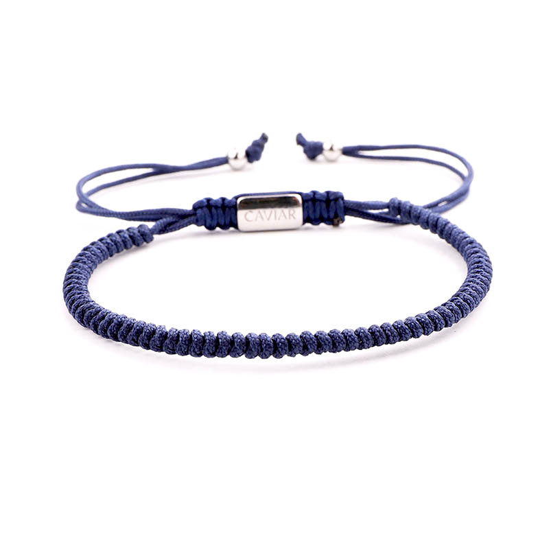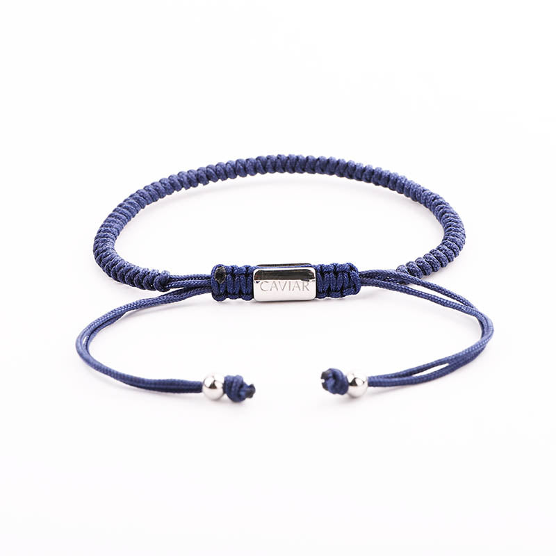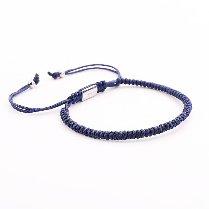 Deze armband is met de hand gemaakt van sterk nylon koord en afgewerkt met een verstelbaar trekkoordslot. De armband opent door de koord die het dichtst bij het slotje ligt in tegengestelde richting te trekken en sluit door de kleine, bungelende zilveren kralen in tegengestelde richting te trekken.