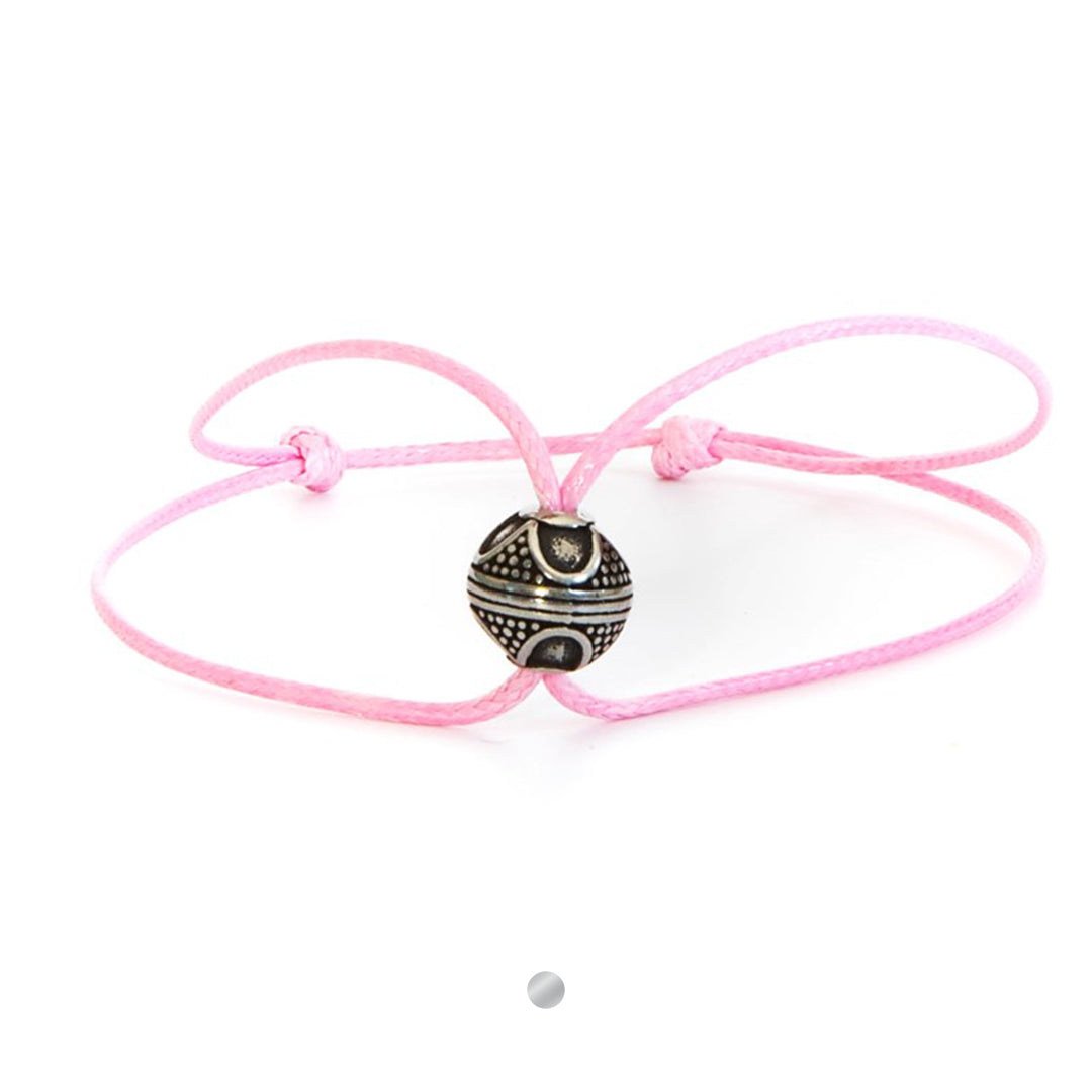 De armband is met de hand gemaakt van sterk wax koord. De armband opent door de knoopjes naar buiten te schuiven en sluit door de knoopjes naar binnen te schuiven.